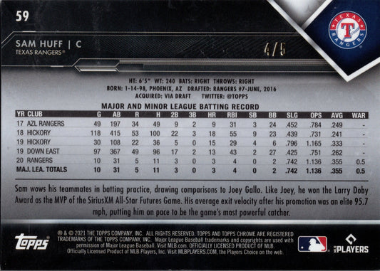 2021 Topps Chrome Black Sam Huff RC 4/5